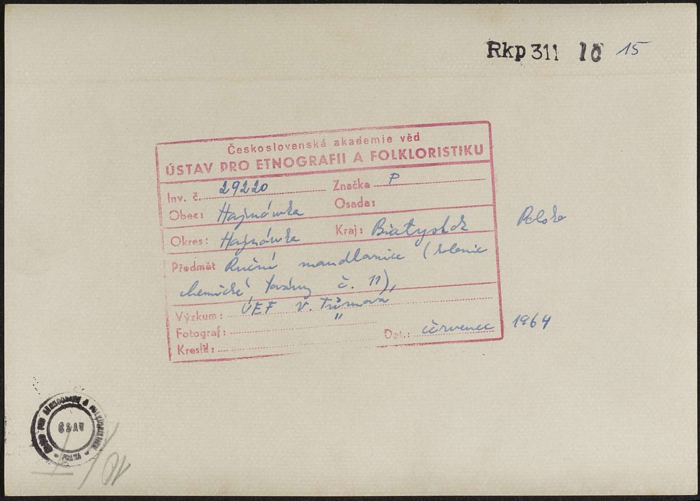 Inventární číslo: 0311